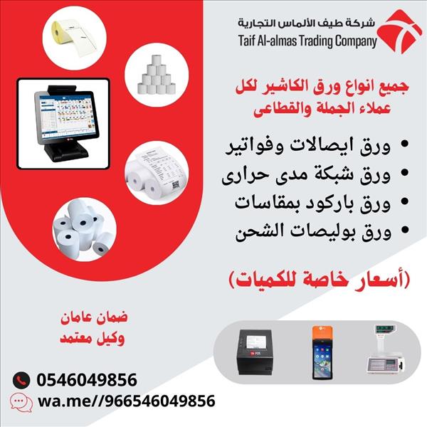 متوفر لدينا شركة طيف الالماس ورق ايصالات ورق فواتير رول حرارى استيكر حرارى جميع المقاسات