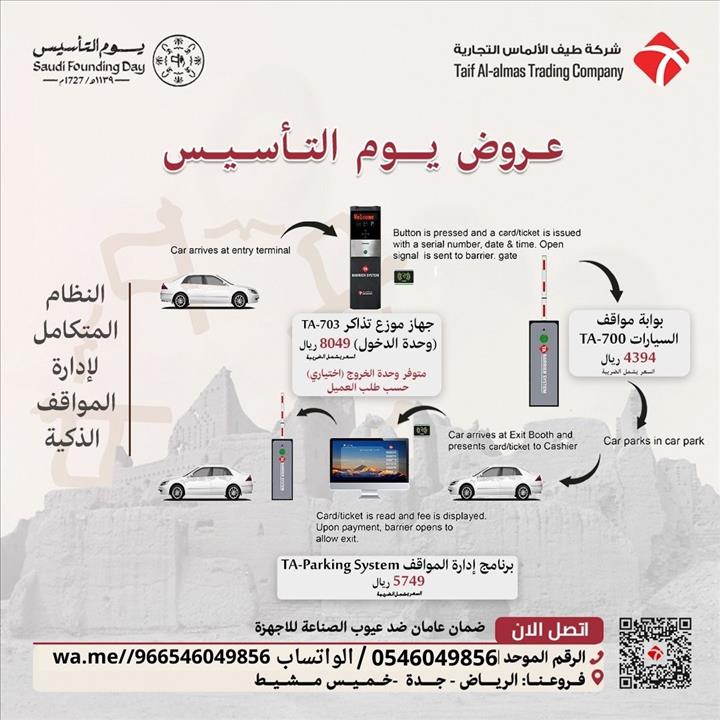 تقدم شركة طيف الالماس التجارية نظام التحكم بمواقف السيارات الذكى الالكترونى الاتوماتيكى عن طريق التذاكر او الكاميرا LPR